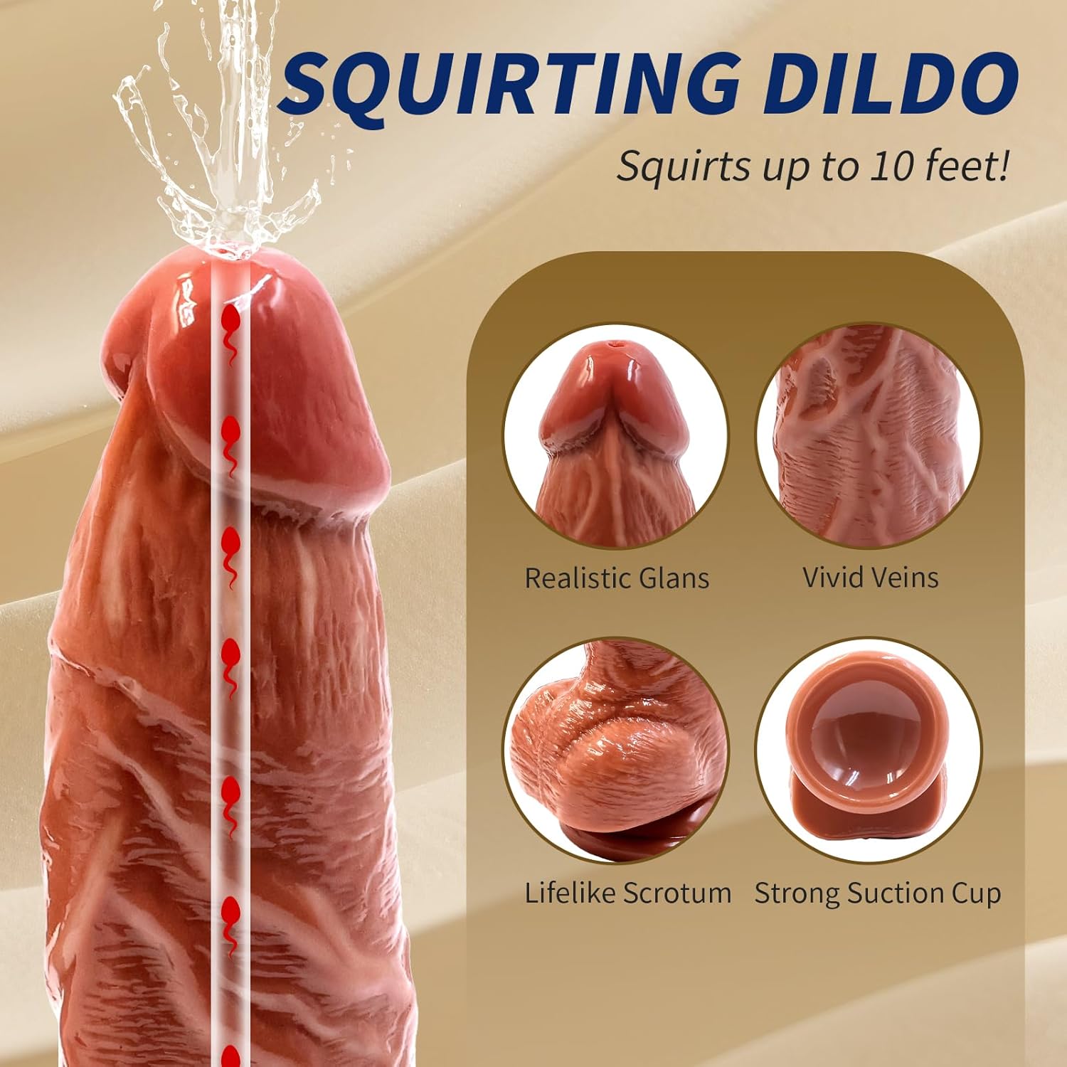 - Squirting Feature: Ejaculates water spray (up to 10 bursts per fill); reservoir holds 50ml of water.